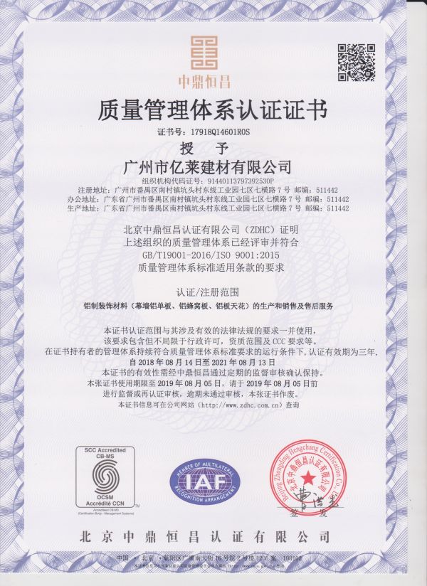 About us廣州市億萊建材有限公司廣州市億萊建材有限公司成立于2007年1月是一家專業(yè)設計、生產(chǎn)、銷售全系列鋁質(zhì)天花、集成吊頂、藝術天花板、非標造型金屬天花、室內(nèi)外鋁單板及鋁蜂巢板幕墻、金屬裝飾工程配套材料的專業(yè)企業(yè);位于南中國經(jīng)濟強區(qū)珠江三角洲的廣州市番禺區(qū)(也是一個技術及資源集中的專業(yè)金屬裝飾材料生產(chǎn)基地);億萊公司屬下品牌:“YILAI億萊”金屬天花&幕墻 及 家居整體吊頂;公司具有年產(chǎn)鋁質(zhì)天花300萬平方米,非標金屬天花及鋁質(zhì)幕墻60萬平方米的生產(chǎn)能力。 |